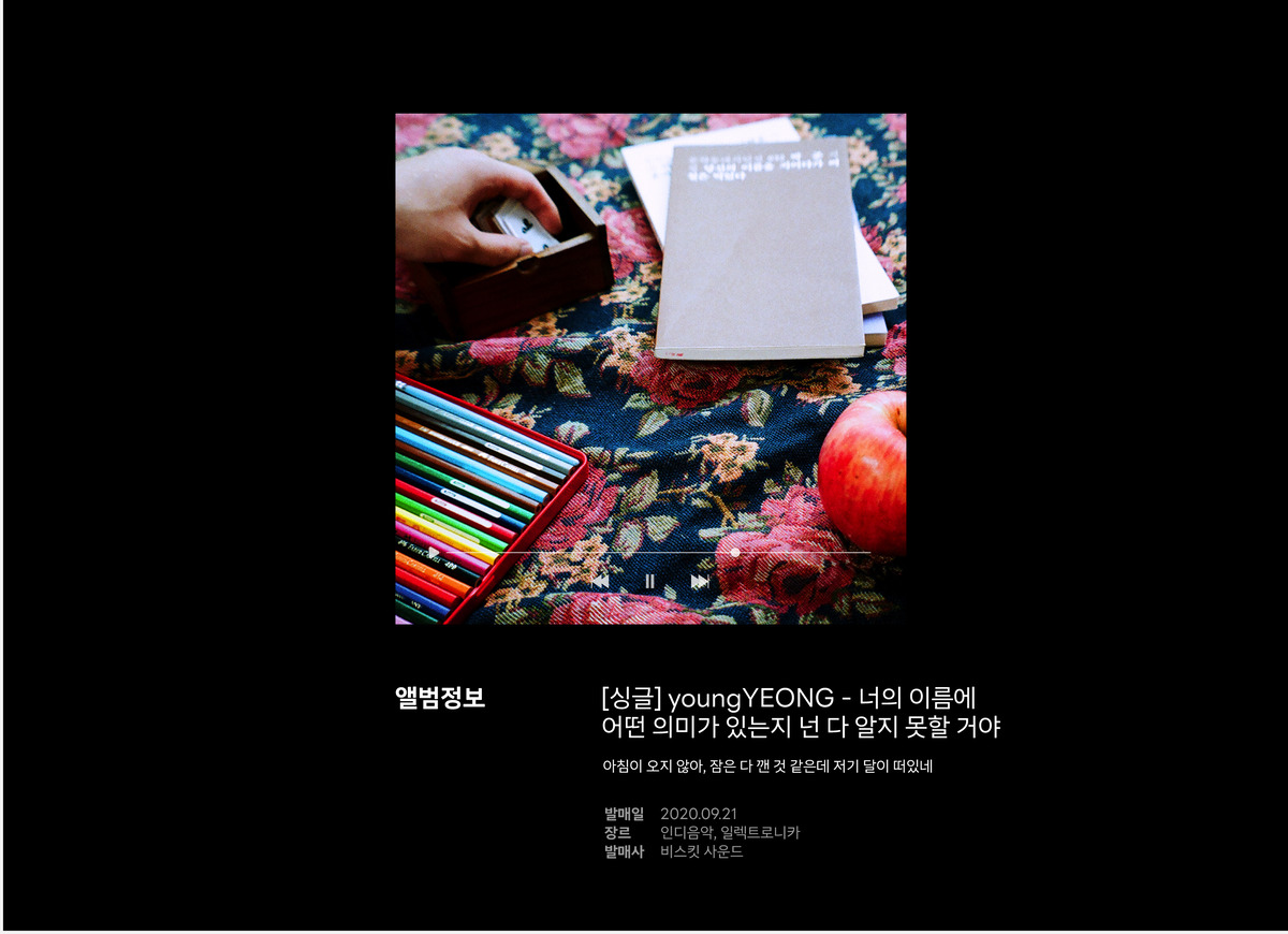 안녕하세요. 음악 프로듀서 장영광입니다. 이전에 ‘영영’이라는 이름으로 싱어송라이터 활동을 했고요, 지금은 프로듀서로서 작사, 작곡, 편곡, 프로듀싱 위주로 작업을 하고 있어요.